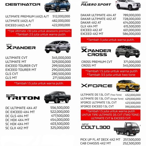 Pricelist Kendaraan Mitsubhishi Update Terbaru April 2026